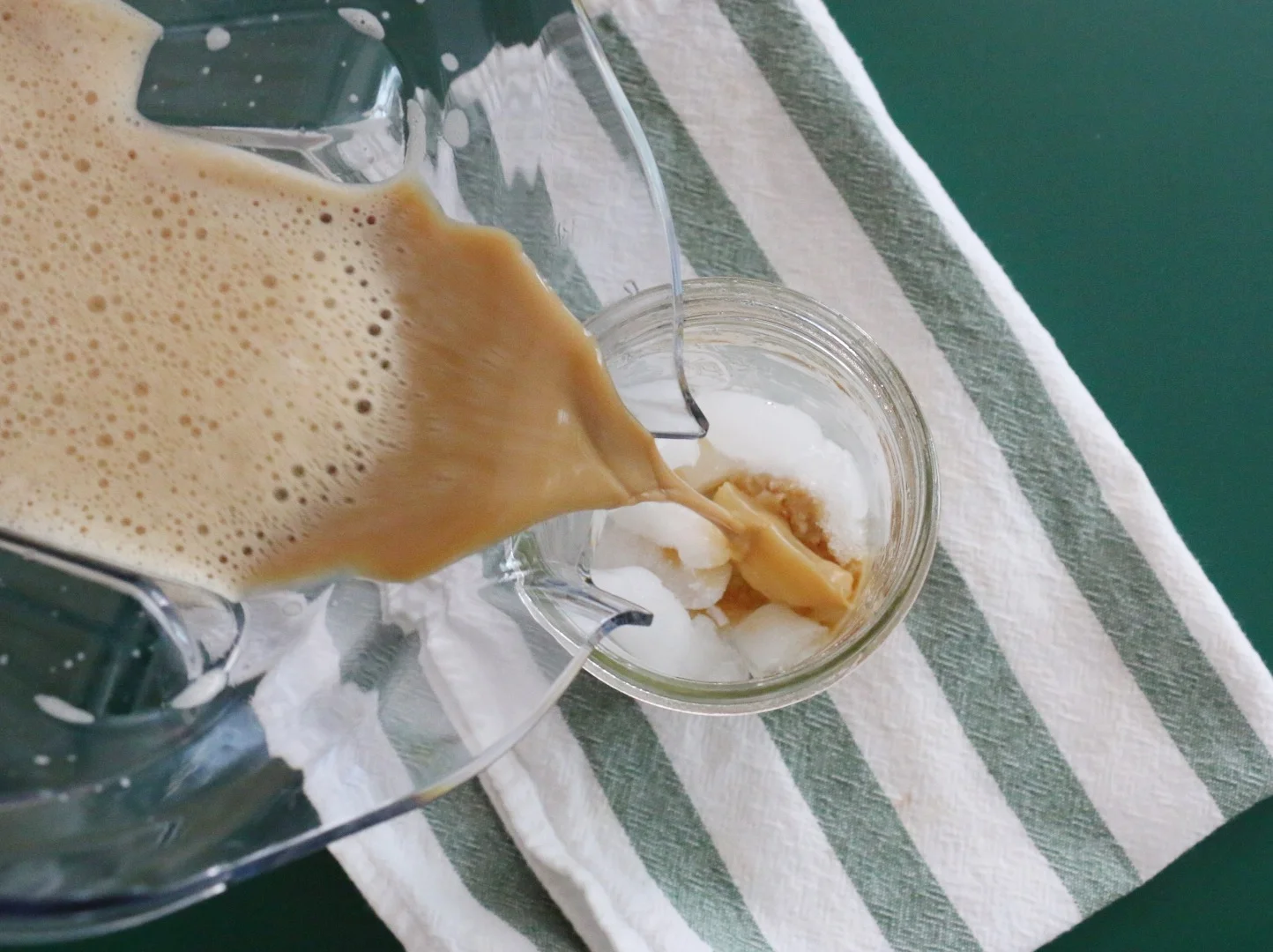 Pour coffee into the blender. Add a tablespoon of sweetened condensed milk for every cup of coffee (more or less depending on preferred level of sweetness). Blend until frothy. Pour over ice. Optional: add a pinch of cinnamon for extra flavor. Enjoy.